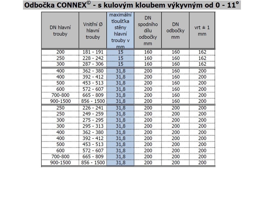Pomocou CONNEX-odbočky môžeme do hlavnej stoky ľahko a ľahko pripojiť domové vedenie či vedľajšie príítoky, či už novo budovaných sietí alebo pri dodatočnom napájaní. Teraz je odbočka vylepšená navyše guľovým kĺbom, ktorý umožňuje výkyv napájaných rúr v rozmedzí 0° až 11°. Tým odbočka CONNEX spĺňa požiadavky podľa ATVDVWK-A139, kde »kanalizačné prípojky majú byť vyrobené a napojené tak, aby mohli reagovať na pohyby zeminy.« Zvýšená flexibilita takto napojených prípojok zaisťuje ich dlhú životnosť a vysokú kvalitu.