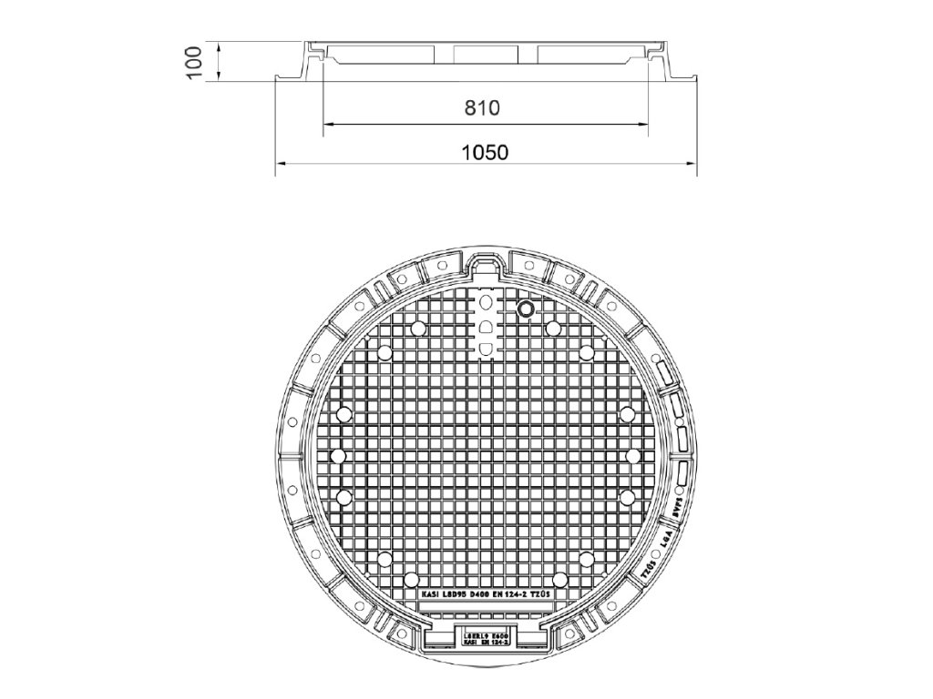 Materiál: Tvárna liatina Hmotnosť: 143 kg Norma: DIN1229, EN124-2