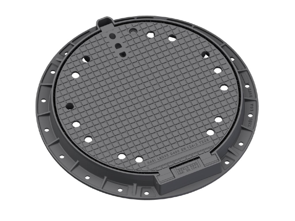 Kanalizačný liatinový poklop Europa 9 D400 pr.800mm, rám liatinový priem.1050mm v.100mm, s ventiláciou