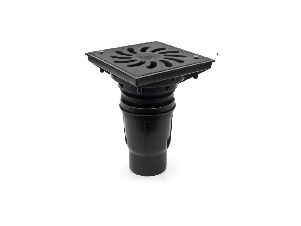 Kanalizačný vpust spodný KVS 110/250 s plastovou mriežkou 245x245mm, nosnosť 1,5t (731SP)