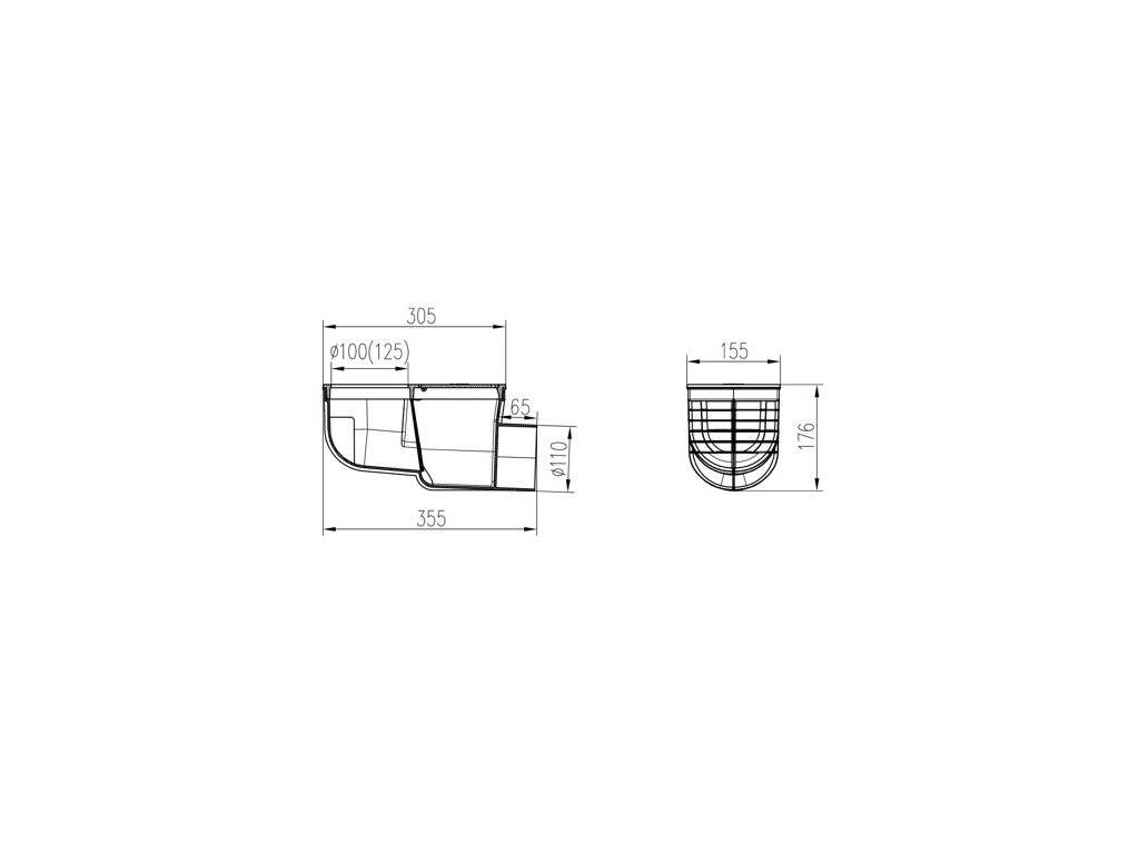 Priemery otvoru pre zvod sú v dvoch veľkostiach 100 mm a 125 mm, súčasťou lapača je aj ochranná prepážka proti zapadnutiu zvodu. Vyrobené z PP a PS s UV stabilizáciou. Odolnosť do 90 ° C, skúšané podľa normy EN 1253. Povrchová úprava liatinového veka náterom v čiernej matnej farbe.