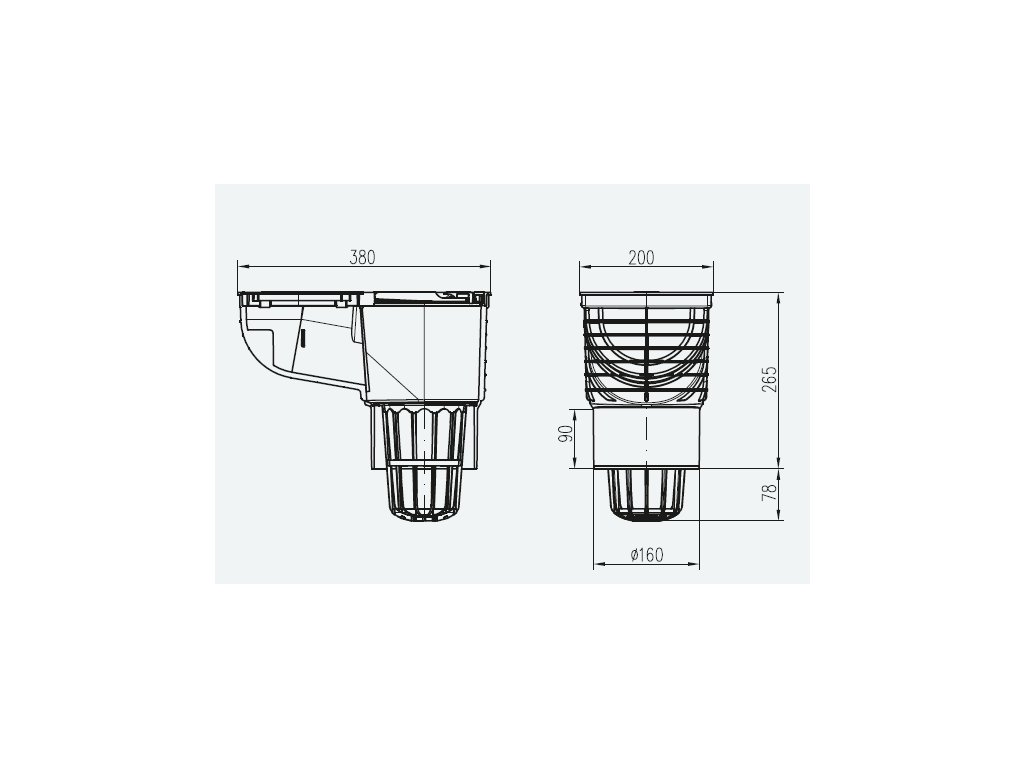 Nový systém odklopného veka je jednoduchší a umožňuje bezproblémový prístup k vyberateľnému košíku, ktorý zabraňuje prenikaniu nečistôt. UV stabilizácia Zaťaženie K3 (300 kg) Protizápachový uzáver s klapkou V čiernom prevedení so spodným odtokom D 160 Košík na zachytávanie nečistôt v plastovom alebo na objednávku v nerezovom prevedení Zosilnenie rebrovania Nový systém otvárania veka Trojitá ochrana prepážka proti zapadnutiu zvodu Nízka stavebná výška Odpadá použitie prechodu KGUG L/PVC.DN 150 S možnosťou redukovať horný vtok dištančnými krúžkami D 110 alebo D 125