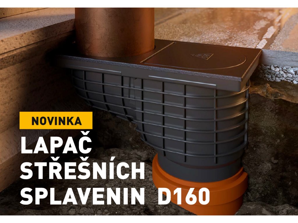Nový model lapača strešných splavenín s liatinovým povrchom. Telo lapača je spevnené rebrovaním, ktoré zabezpečuje lepšiu stabilitu a pevnosť výrobku v krajine. Súčasti je protizápachová klapka zabraňujúca spätnému zápachu z kanalizačného potrubia. Liatinové veko umožňuje bezproblémový prístup k vyberateľnému košíku, ktorý zabraňuje prenikaniu nečistôt. Priemer otvoru pre zvod je 160 mm, súčasťou lapača je tiež ochranná prepážka proti zapadnutiu zvodu. Vyrobené z PP a PS s UV stabilizáciou. Odolnosť do 90°C, skúšané podľa normy EN 1253. Povrchová úprava liatinového veka náterom v čiernej matnej farbe.