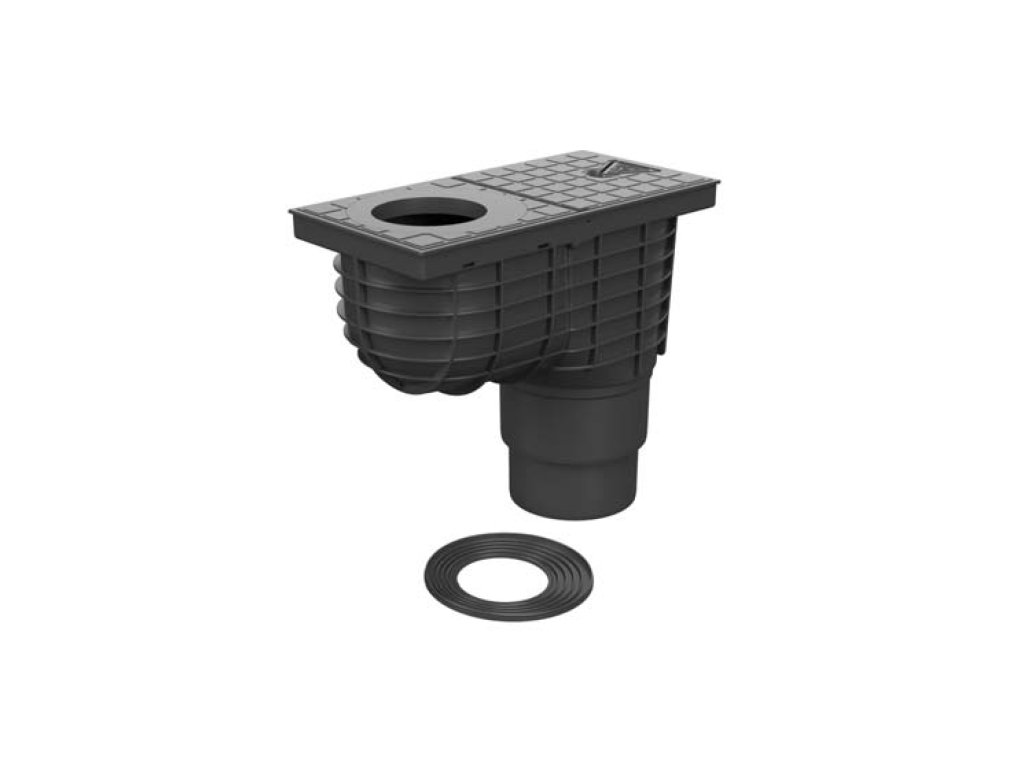 Lapač strešných vôd spodný D 110/125-STANDARD Výrobok je určený na odvod dažďových (povrchových) vôd do kanalizačných systémov mimo budov a umožnuje pripojenie odkvapových zvodov. Obsahuje suchú protizápachovú klapku zabraňujúcu spätnému zápachu z kanal. potrubia. Excentrické veko zvodu pri prevedení STANDARD je určené na vyrezanie požadovaných priemerov 75, 80, 90, 100, 110, 125 mm. Verzia vpustu UNIVERSAL obsahuje krúžky s menovitými rozmermi priemerov 75, 80, 90, 100, 110 a 125 mm. Výrobok má kombinovaný odtok D 110/125 mm. Vyrobené z PP a PS s UV stabilizáciou. Zaťaženie K3–300 kg, odolnosť do 90°C, skúšané podľa normy EN 1253. Mriežka vpusti iba na objednanie.