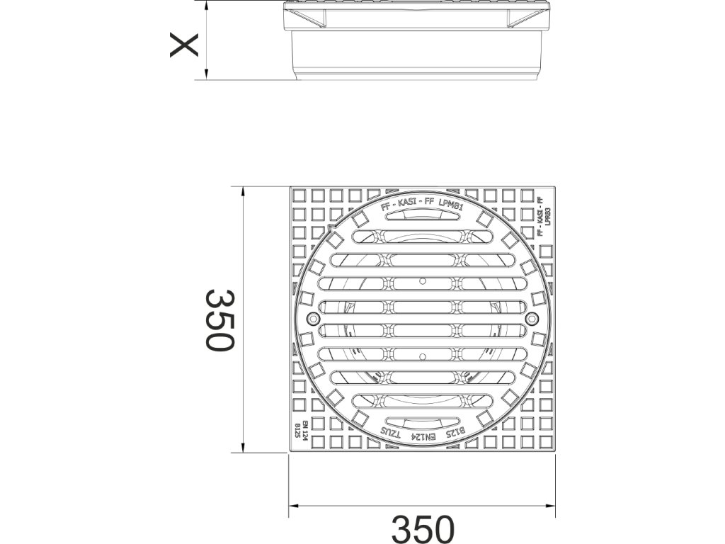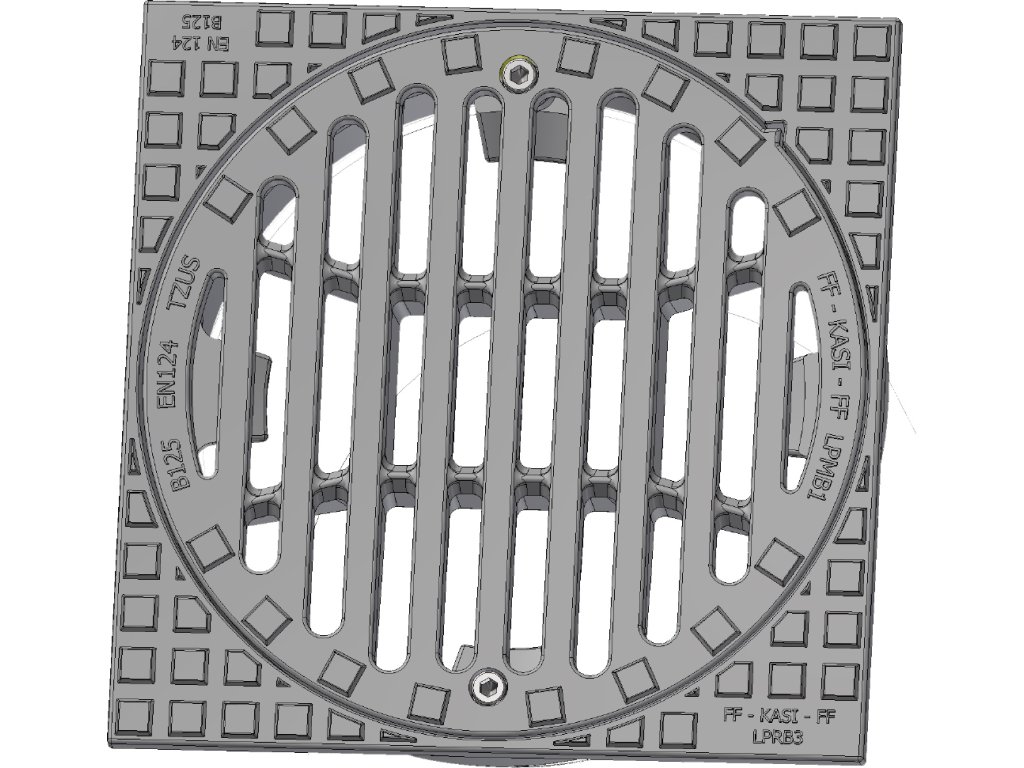 Liatinová mreža B125 350x350mm, na plastovú šachtu DN400/315 (bez teleskopu315mm), nosnosť 12,5t