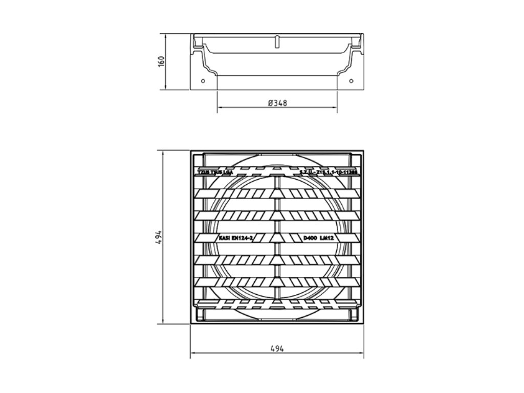 Kód výrobku KM12P, materiál betón + zliatina, hmotnosť 70 kg, norma EN 124-2