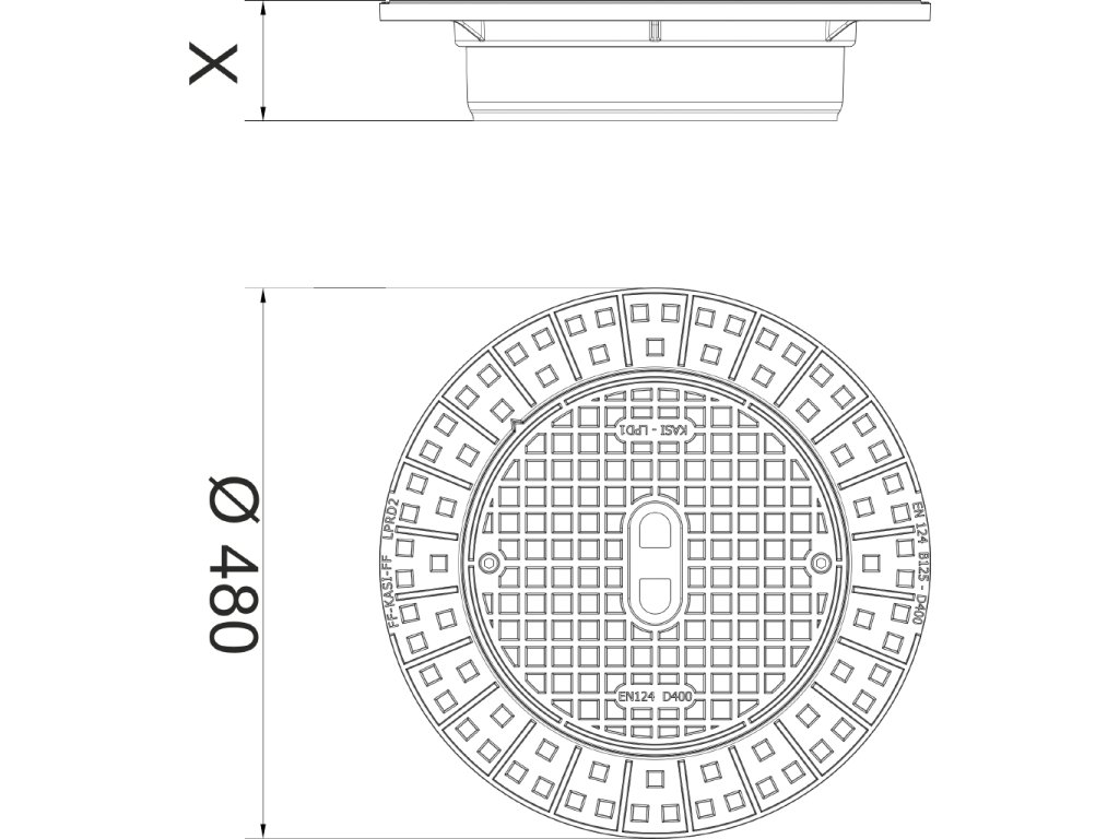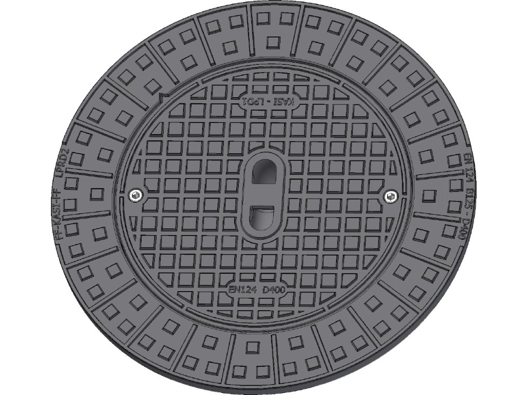 Liatinový poklop D400 priemer 480mm, na plast. šachtu DN400/315, nosnosť 40,0t, bez teleskopu (KPD1)