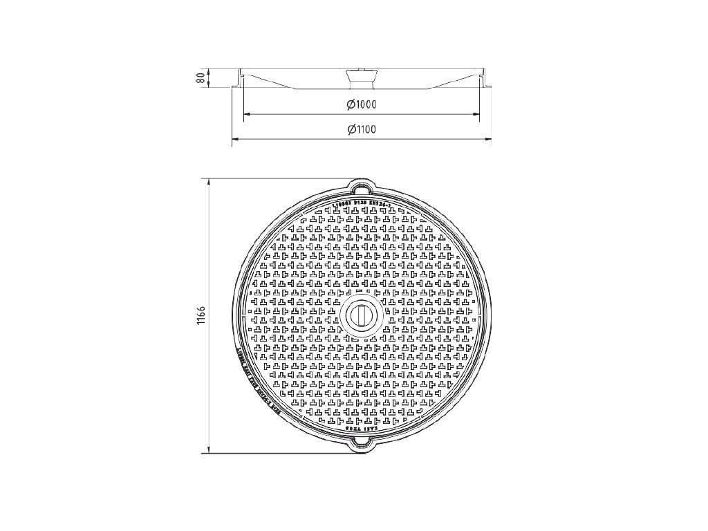 Liatinový šachtový poklop B125 bez odvetrania, priemer. 1000mm, v liatinovom ráme s pätkou 1100mm