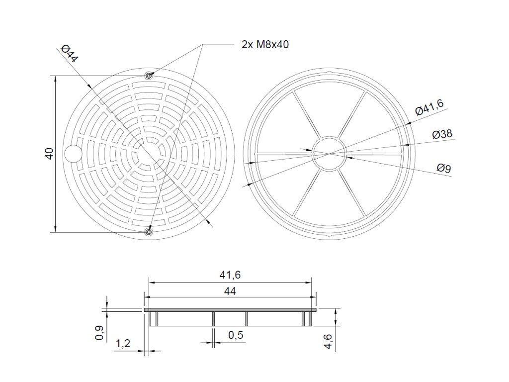 Poklop plastový okrúhly A15-1,5 t na hladkú rúrku KG DN 400 zaistený dvoma skrutkami v ZELENOM prevedení
