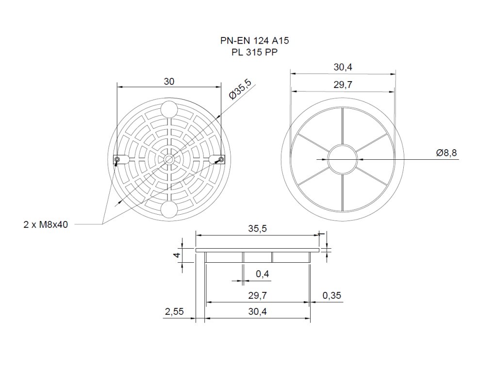 Plastový poklop A15 pre plastovú šachtu DN300 korugovaná, nosnosť 1,5 t, bez rámu
