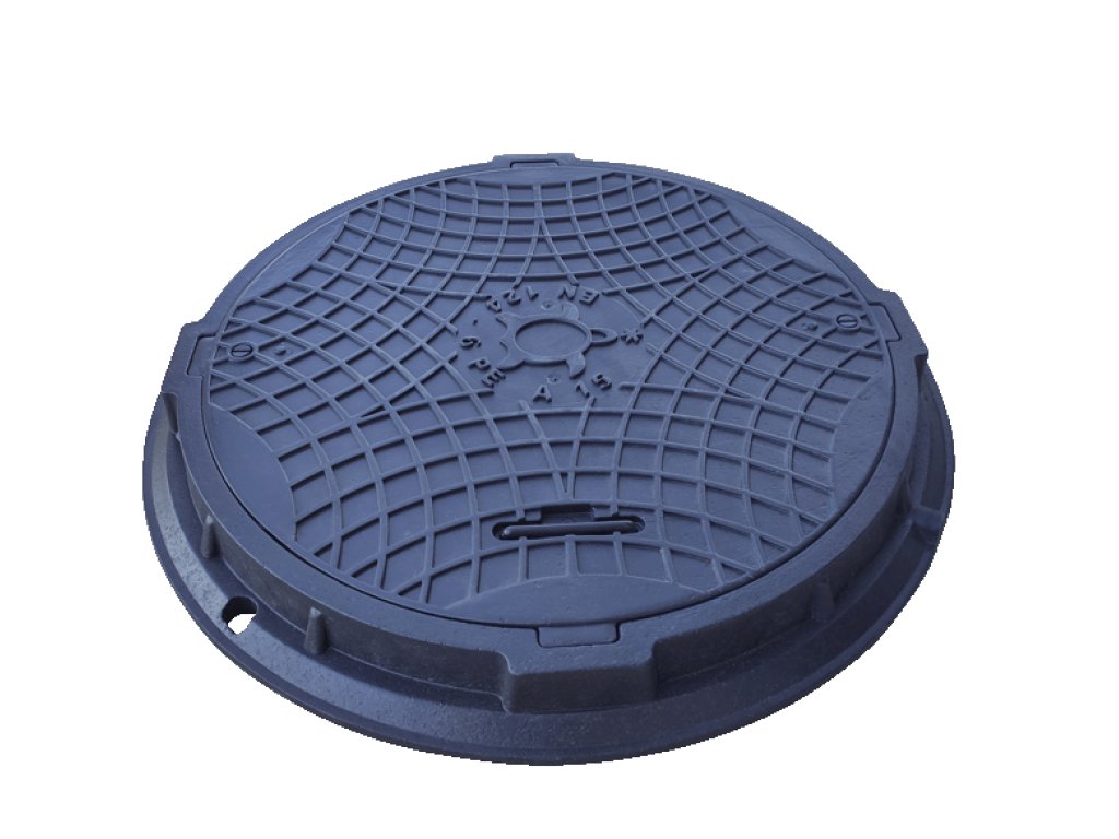 Plastový polymérový poklop kruhový, vnútorný pr. 600 mm, A15 - čierny