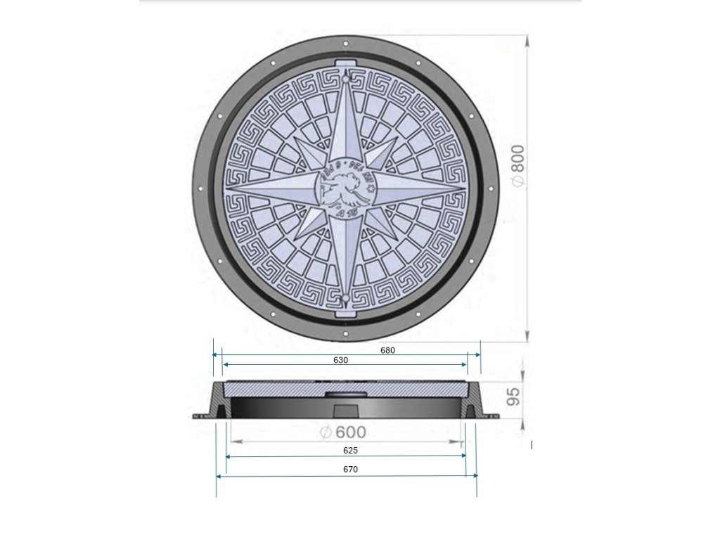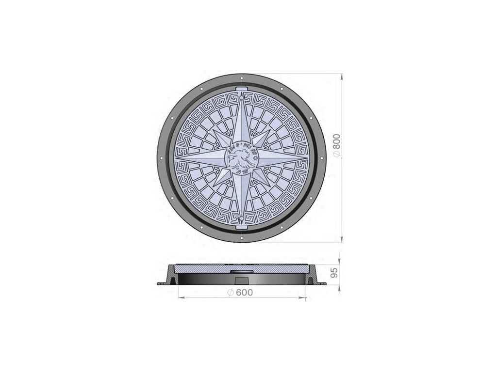 Plastový poklop kruhový s rámom, priemer 60cm, zaťaženie A50 kN (5t)
