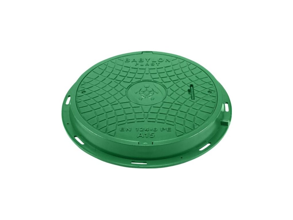 Plastový polymérový poklop kruhový, vnútorný pr. 600 mm, A15 - zelený, 1,5t