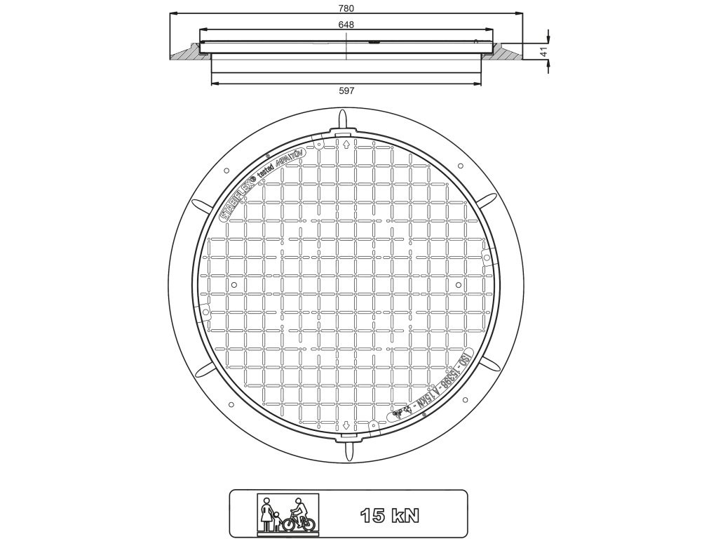 Plastový kryt PP 600 pre vodovodné/kanalizačné šachty, nosnosť 600 kg, priemer 650 mm, pre priemer otvoru 600 mm. Kryt PP 600/600 s nosnosťou 600 kg, môže byť zaťažený pojazdným „kolieskom“ s nosnosťou nepresahujúcou 600 kg.