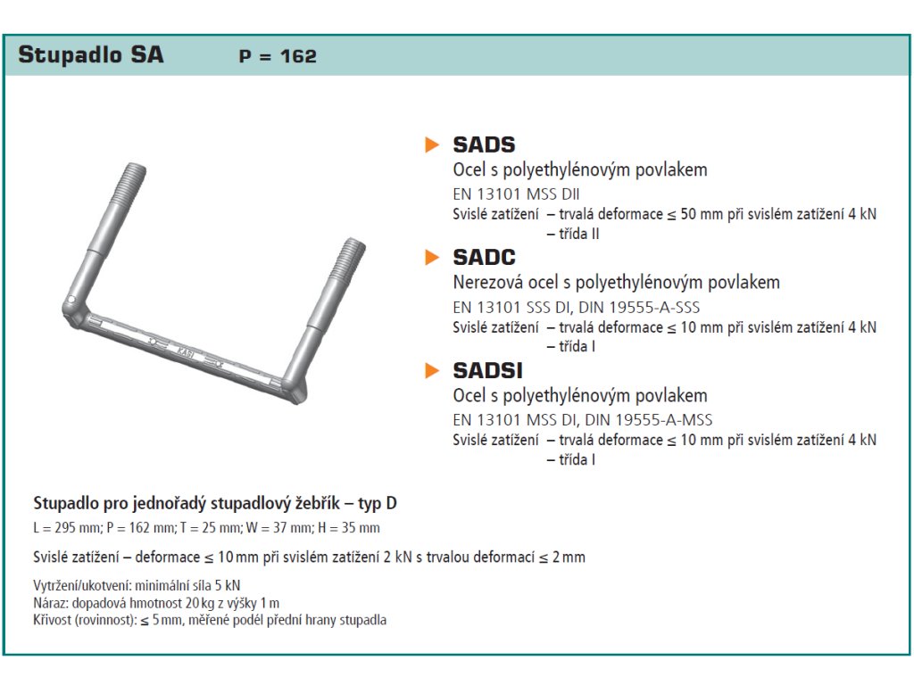 Šachtové vidlicové stúpadlo typ “A” pre jednoradový rebrík jednoradové stúpadlo s dvoma ohybmi odolný povlak z PE-HD a protišmykový dizajn jadro z ocele (prípadne z nerezovej ocele alebo hliníka) 4 rôzne dĺžky stúpadla vyrobené podľa EN 13101 minimalizácia straty vodotesnoti skruža