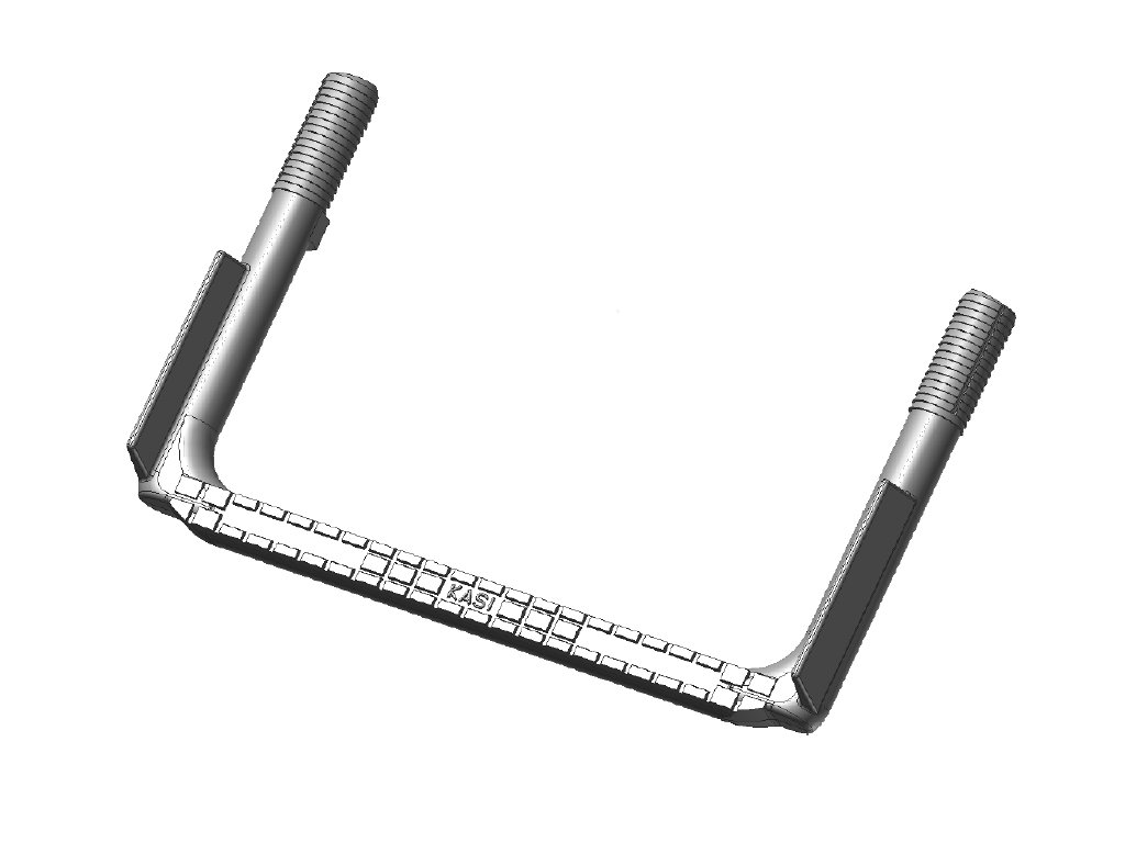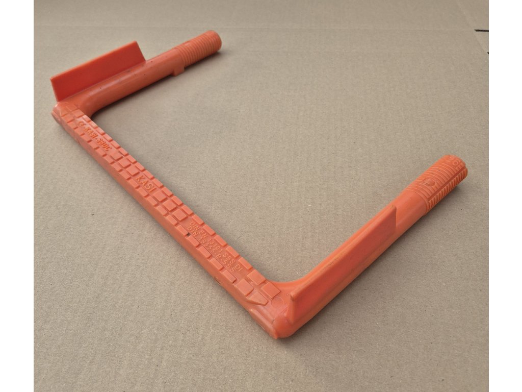 Šachtové vidlicové stúpadlo typ "B" pre jednoradový rebrík.Nerezová oceľ s polyetylénovým povlakom - s jedným ohybom, dlhá bočnica.