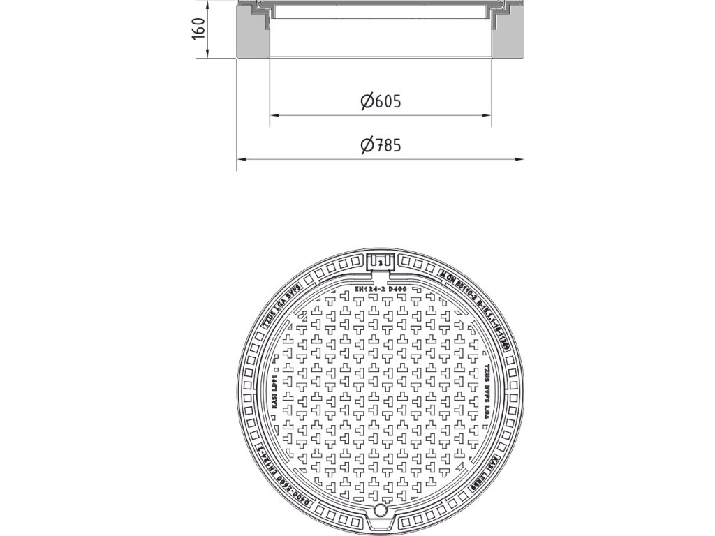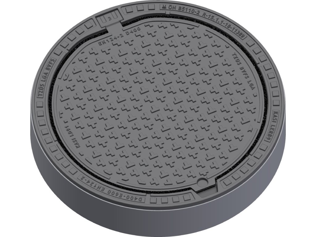 Šachtový liatin. poklop KDB93 Europa9 D400, rám BEGU, bez ventilácie, nosnosť 40,0t, priemer 600mm