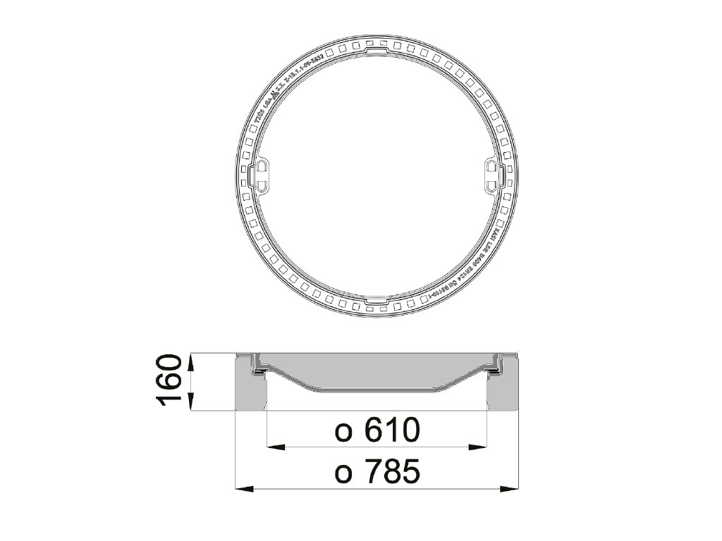 VEKO: - Hmotnosť veka 85kg - S betónovou výplňou bez odvetrania - nezaujímavé pre zlodejov RÁM: - Výška rámu 160mm, hmotnosť 71kg - Použitie s vyrovnávacími prstencami BAR-V a BAR - Liatino-betónový rám bez osadenia pre lapač Vhodný do miest s vysokou dopravnou záťažou Integrovaná PUR tlmiaca vložka s vysokou odolnosťou OSTATNÉ: chemická odolnosť betónu XF4
