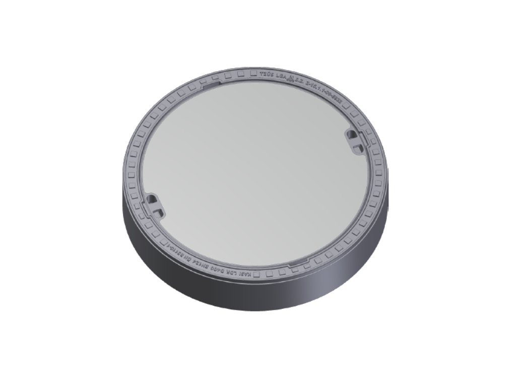 Šachtový poklop bez odvetrania v liatino-betónovom ráme D400 - ťažké dopravné zaťaženie poklop bez pántu, horizontálna PUR tlmiaca vložka na ráme, bez pružinového zaistenia veka v ráme